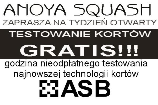 Zapraszamy do testowania kortów ASB Squash w klubie ANOYA w Starych Babicach między 26 - 31 sierpnia 2013 w godzinach 16.00 - 23.00. Kontakt do klubu: Stare Babice Warszawa, www.anoyasquash.pl tel. 724 604 094